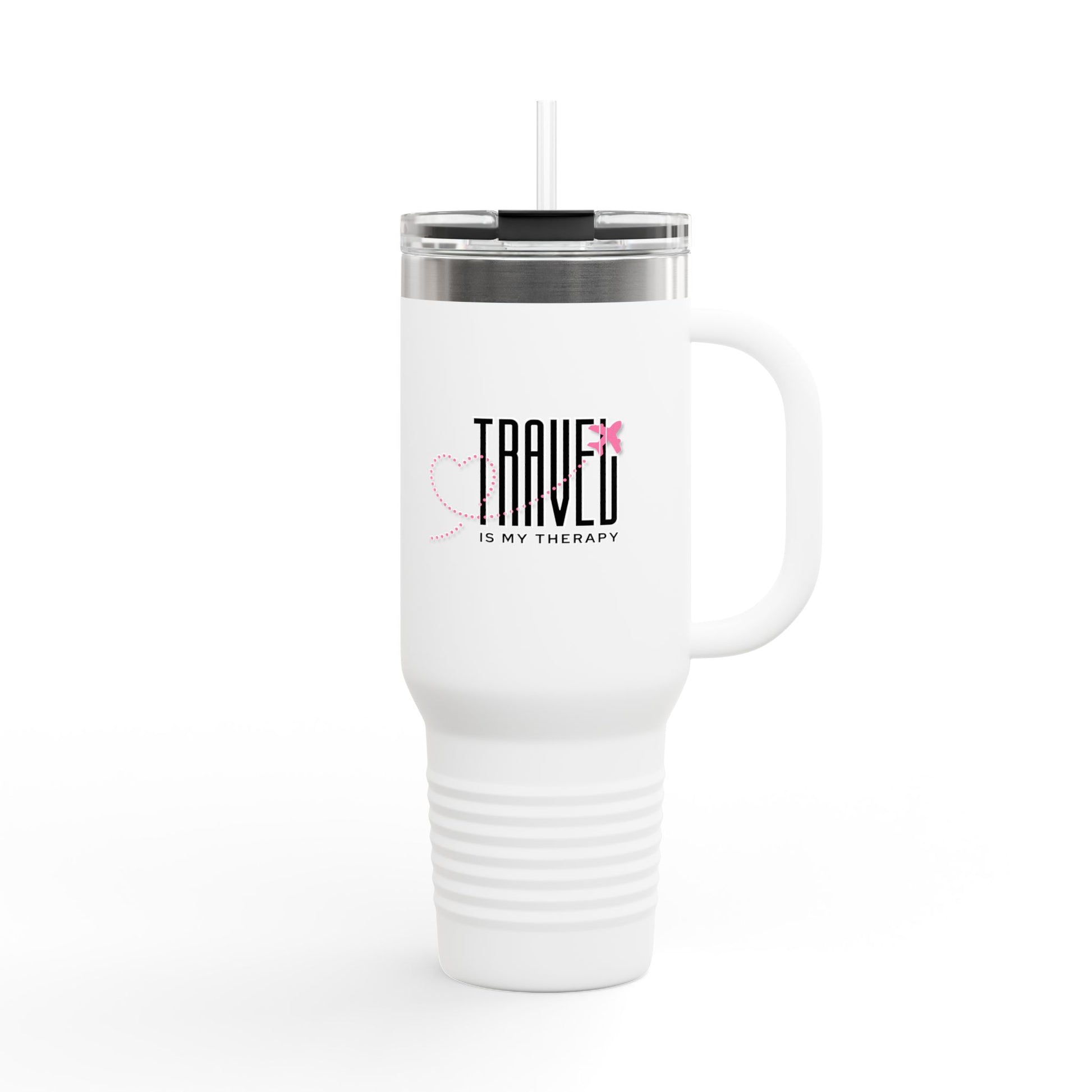 Travel is my Therapy Insulated Travel Tumbler, 40oz | Perfect for Adventures, Road Trips, Gifts, Summer Fun, Beach Days, Outdoor Activities | Pink
