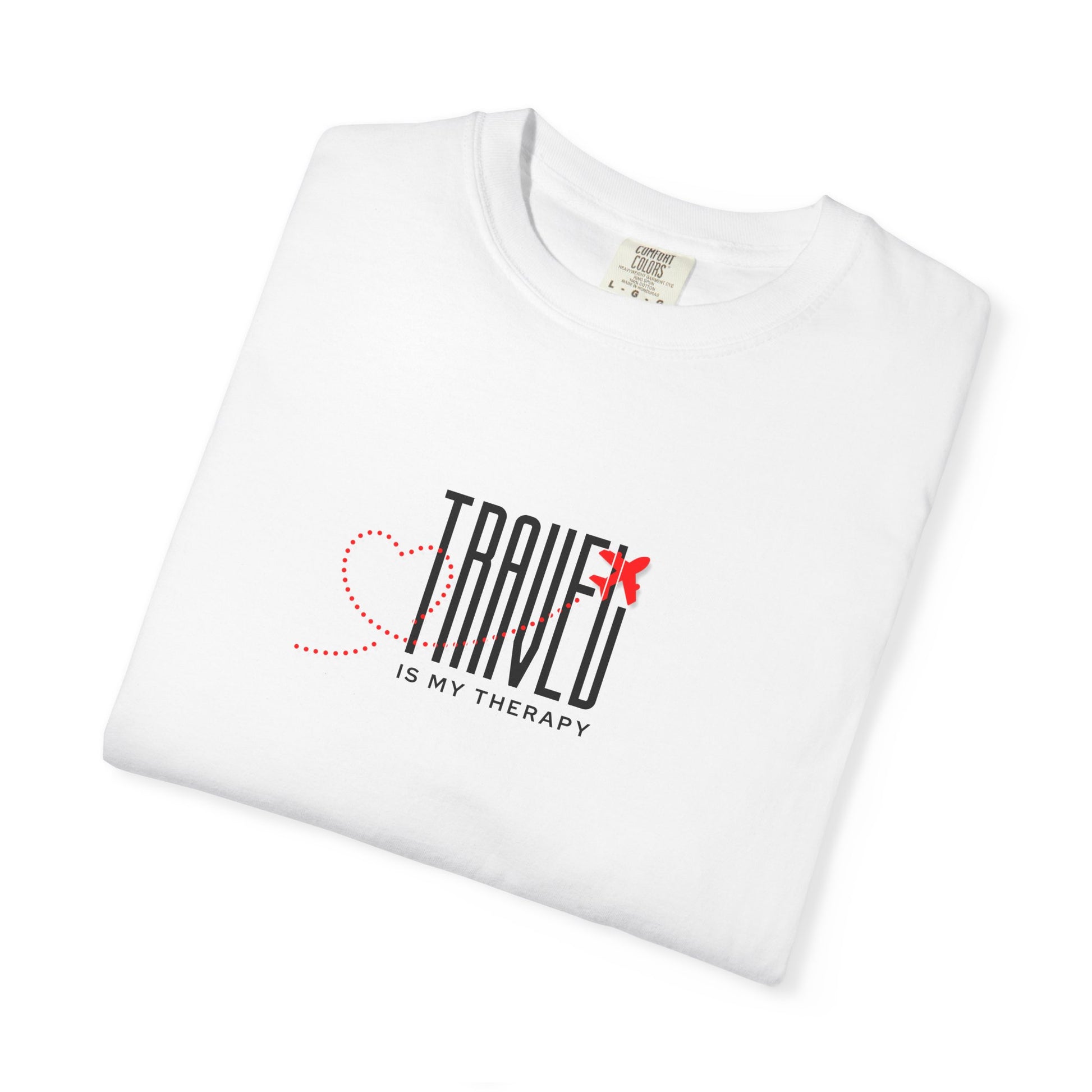 Travel is My Therapy Unisex T-Shirt | Airplane Heart Trail Wanderlust Tee | Travel Lover Gift | Red