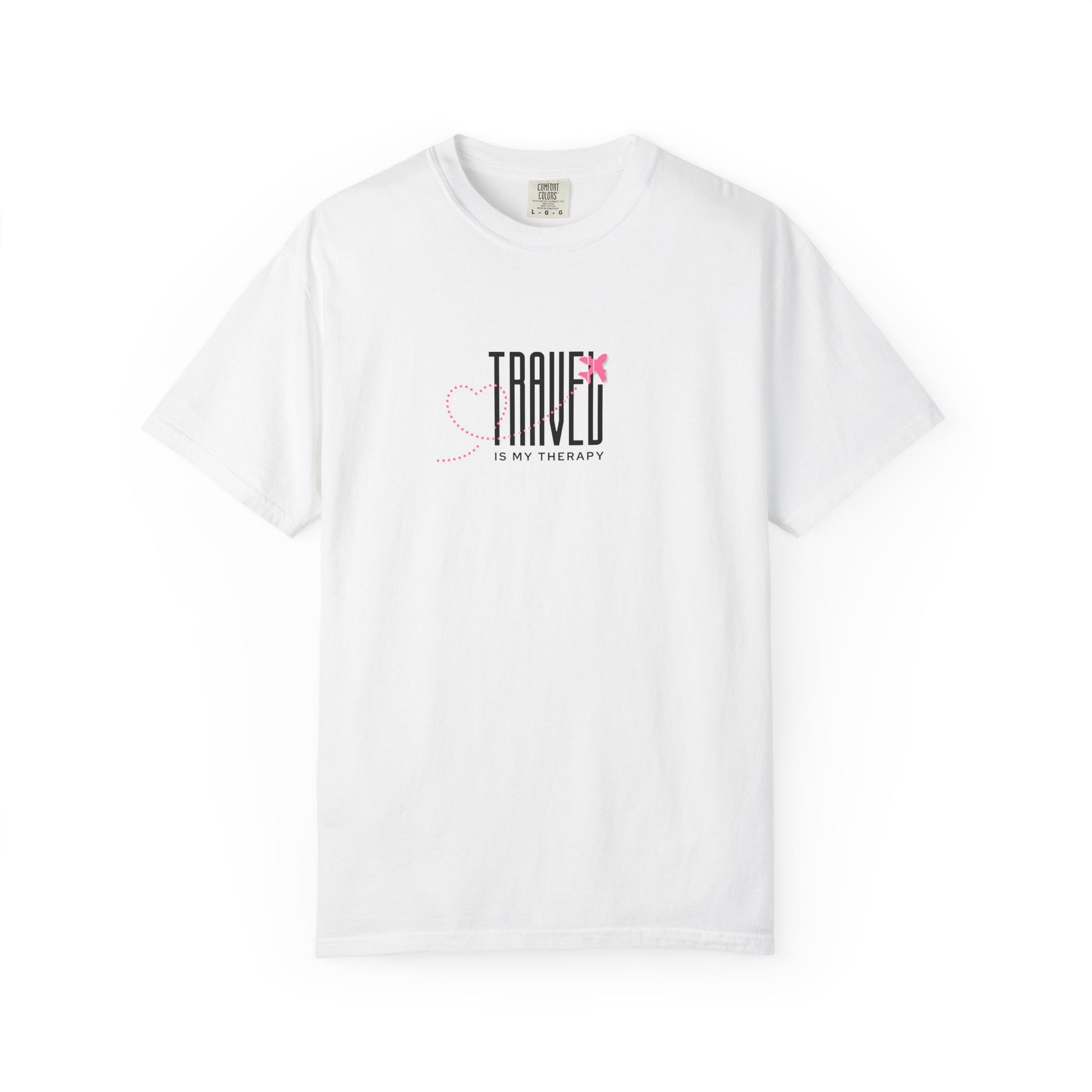 Travel is My Therapy Unisex T-Shirt | Airplane Heart Trail Wanderlust Tee | Travel Lover Gift | Pink
